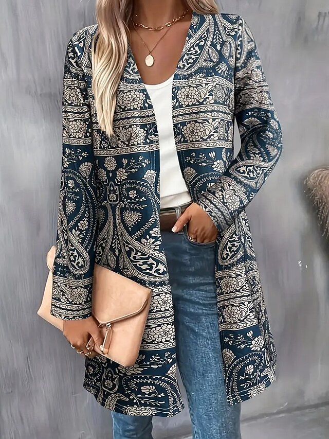 HOT ! Women's Winter Coat Trench Coat Lightweight Comfortable Print Open Front Vintage Fashion Casual Floral Vacation Casual Long Collarless Regular Fit Long Sleeve Outerwear Blue Purple Green Spring Fall