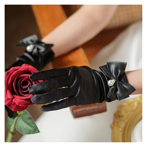 sought-after ! 2 Pairs Bride Gloves Elegant Bow Knot Pearl Pendant Short Gloves for Wedding Opera Dinner Party Elastic Satin(Black)