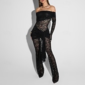 More information about Women's Normal Jumpsuit Stylish Solid Color Long Sleeve Off Shoulder Lace Going out Bar Regular Fit Black Summer