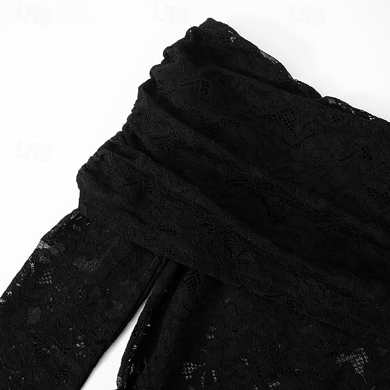 Women's Normal Jumpsuit Stylish Solid Color Long Sleeve Off Shoulder Lace Going out Bar Regular Fit Black Summer 5