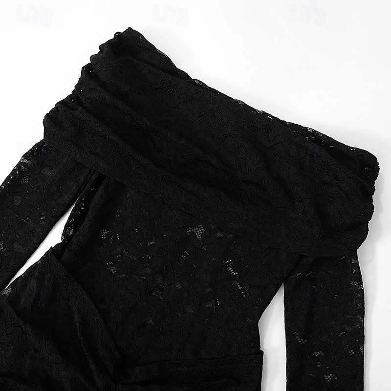 Women's Normal Jumpsuit Stylish Solid Color Long Sleeve Off Shoulder Lace Going out Bar Regular Fit Black Summer 12