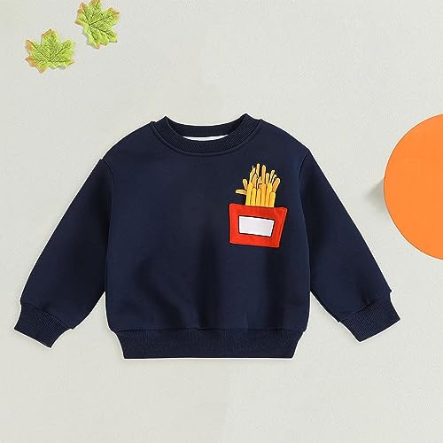 Sweater for Boys Kids Sweatshirts Soft Cotton Warm Crewneck Long Sleeve Round Neck French Fries Printed 5