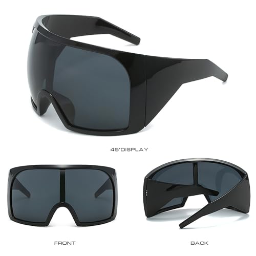 New Large Frame Surround Style Sunglasses For Women And Men, Futuristic Technology Integrated Eye Protection Sunglasses (Black) 7