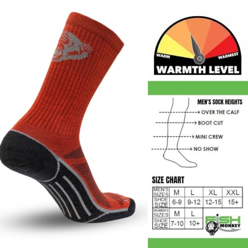 HOT ! Fish Monkey Lightweight Wool outdoorfishing and hunting socks with ventilation panels