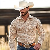 More information about Men's Floral Print Western Shirt Button Up Shirt Cowboy Shirt Long Sleeve Western Vintage Retro Outdoor Casual Summer Spring Fall Turndown Collared Shirts Front Two Pockets Khaki