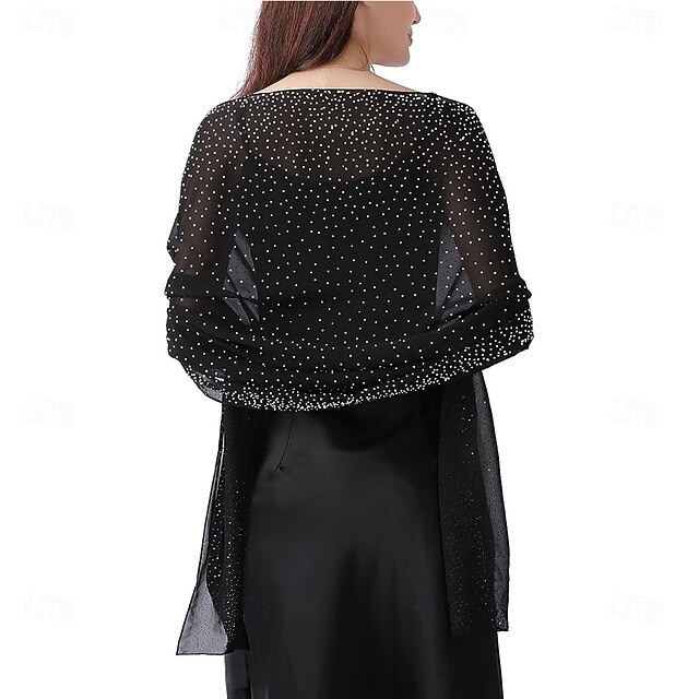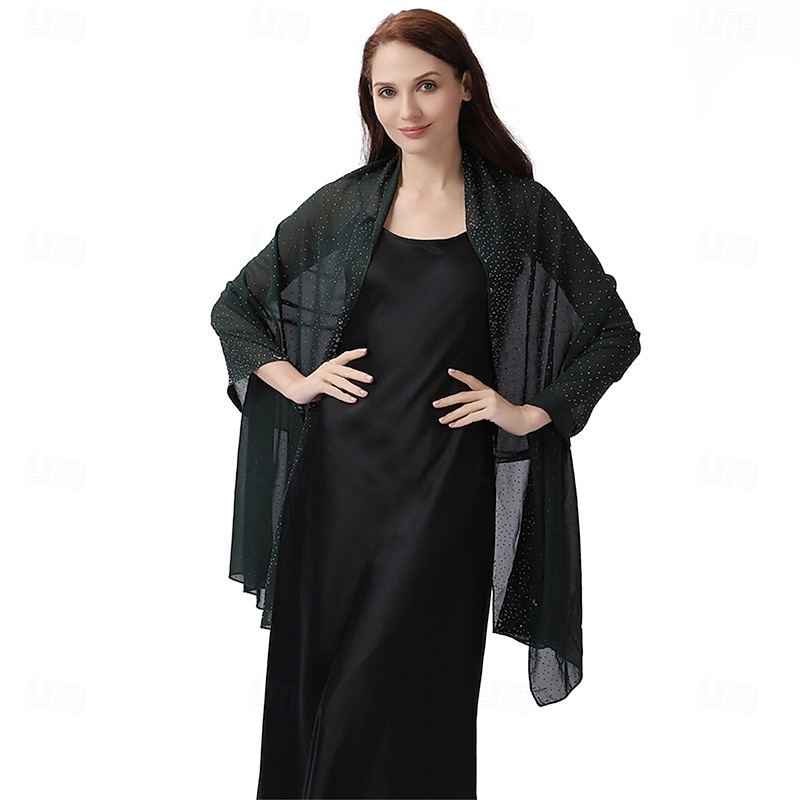 Women Shawls and Wraps for Evening Dresses Sparkly Rhinestone Sheer Chiffon Scarf Shawls Formal Dress Cover 19