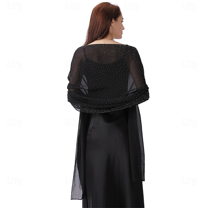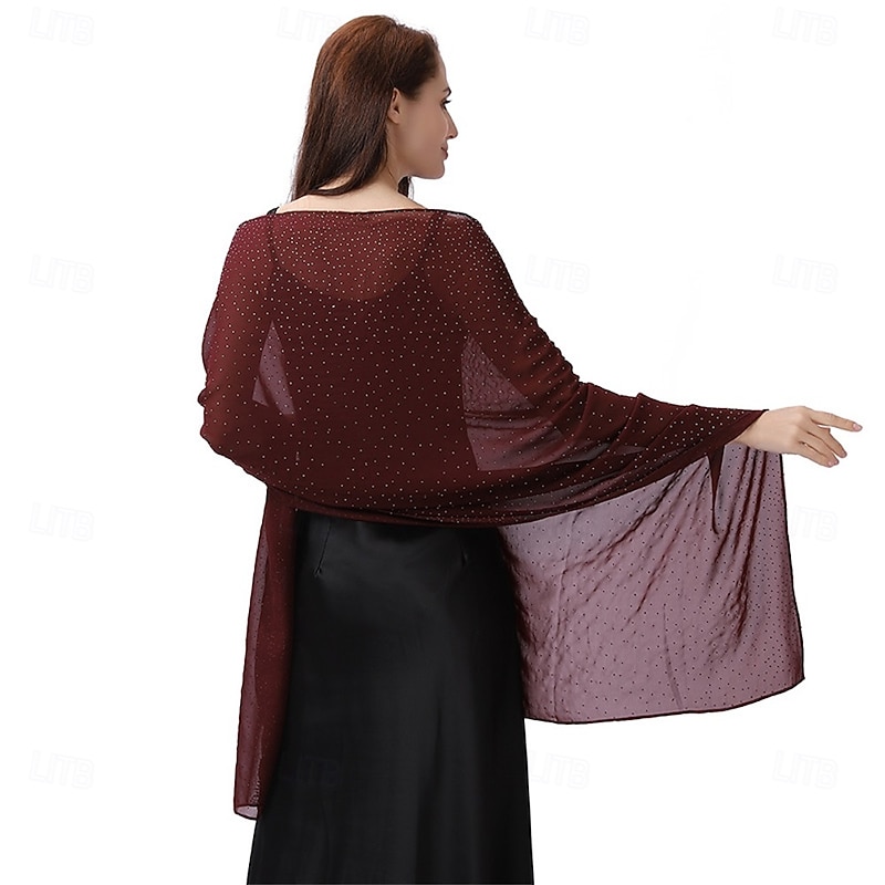 Women Shawls and Wraps for Evening Dresses Sparkly Rhinestone Sheer Chiffon Scarf Shawls Formal Dress Cover 5