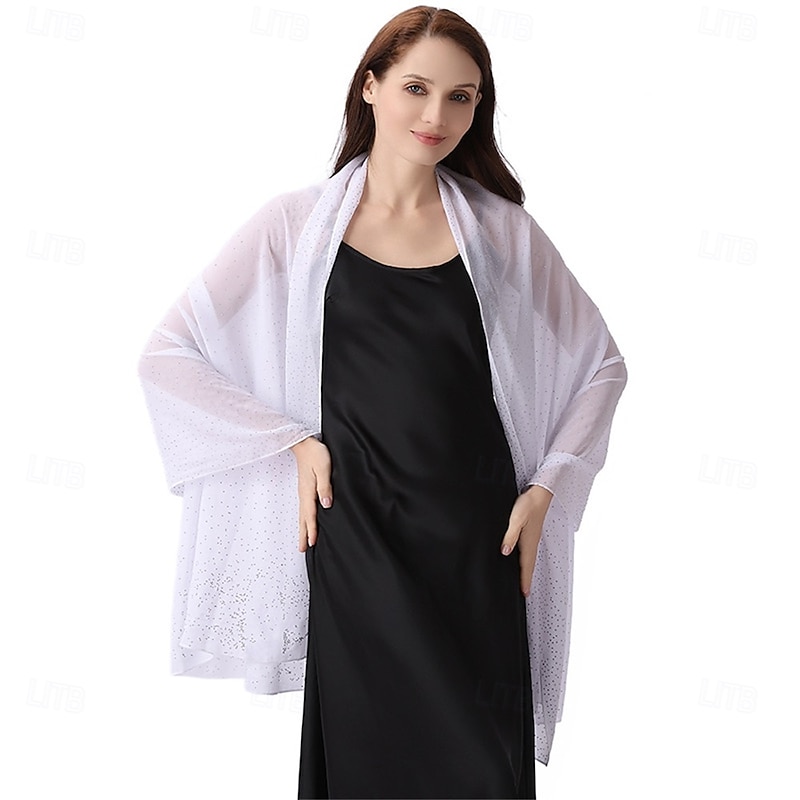 Women Shawls and Wraps for Evening Dresses Sparkly Rhinestone Sheer Chiffon Scarf Shawls Formal Dress Cover 12