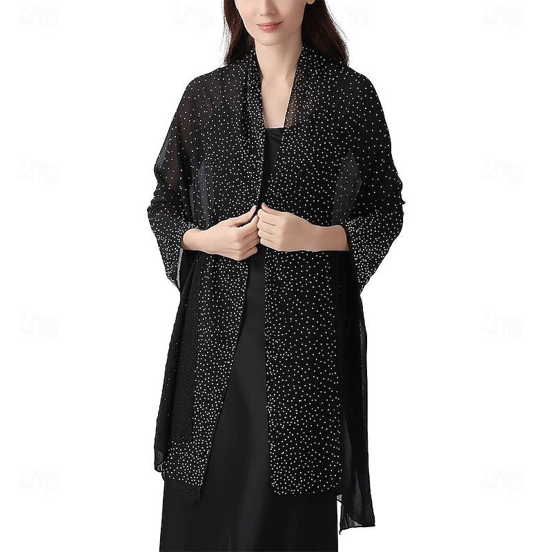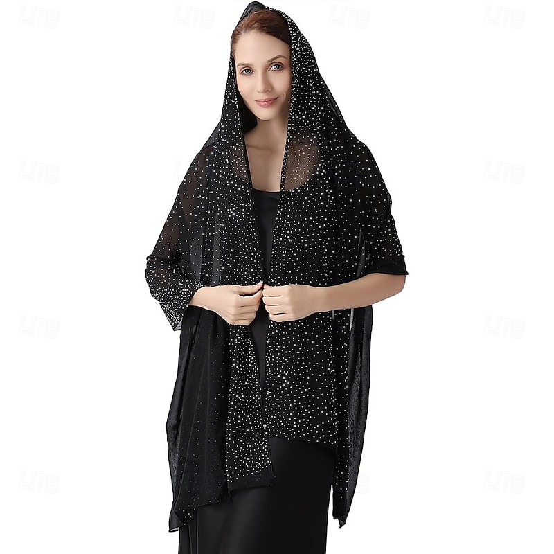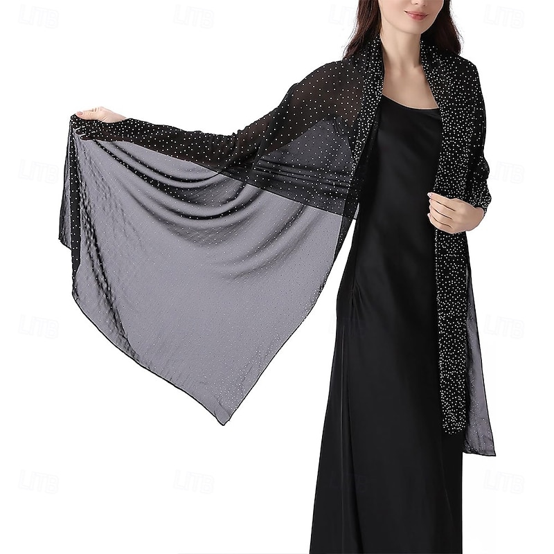 Women Shawls and Wraps for Evening Dresses Sparkly Rhinestone Sheer Chiffon Scarf Shawls Formal Dress Cover 1