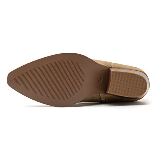 ANJOUFEMME Western Women's Cowboy Cowgirl Boots,Embroidered Round-toe Mid-calf Boots 4