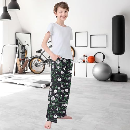 Boy's Pj Pants Skull Climbing Curly Rose Thorn Lounge Bottoms Elastic Waist Kids Joggers with Pockets Size 6-14 4