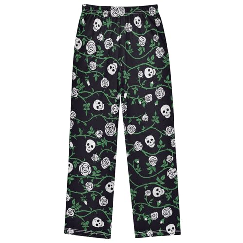 Boy's Pj Pants Skull Climbing Curly Rose Thorn Lounge Bottoms Elastic Waist Kids Joggers with Pockets Size 6-14 6