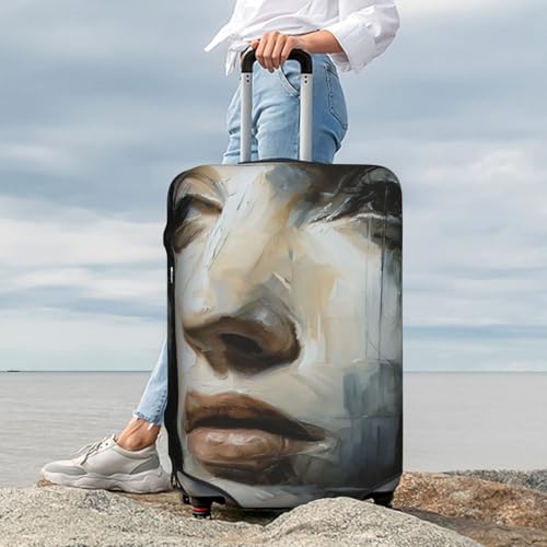 Attractive Woman Face Elastic Travel Luggage Covers Dustproof Scratch-Resistant Suitcase Protector Fit 22-24 Inch 7