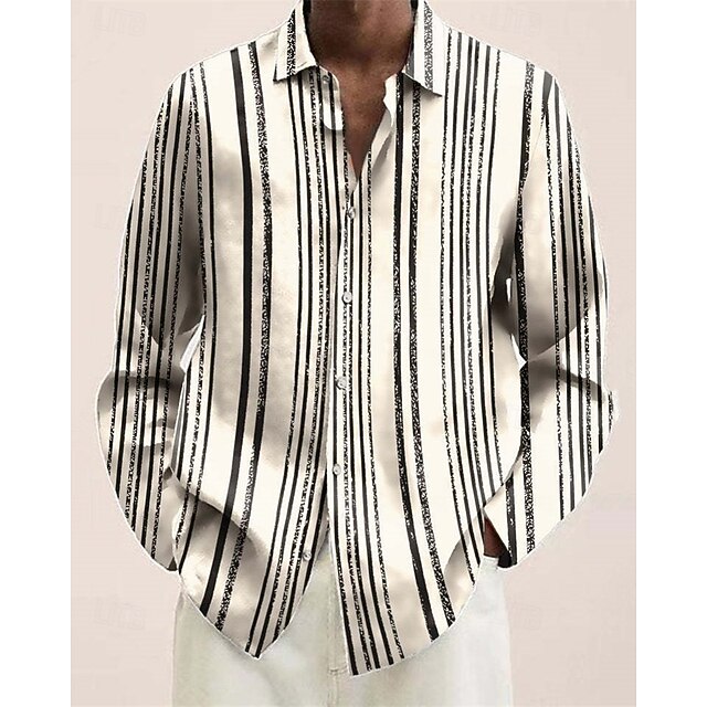 More information about Men's Shirt Summer Shirt Casual Shirt Beach Shirt Button Up Shirt Black Blue khaki Beige Light Blue Long Sleeve Graphic Stripe Lapel Vacation Hawaiian Button-Down Clothing Apparel Polyester Fashion