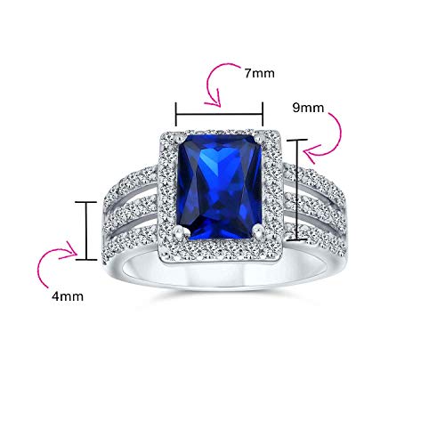 Personalize Art Deco Style 3CTW Rectangle AAA CZ Green Blue Emerald Cut Halo Cocktail Statement Engagement Ring For Women Wide Band .925 Sterling Silver Customizable 5