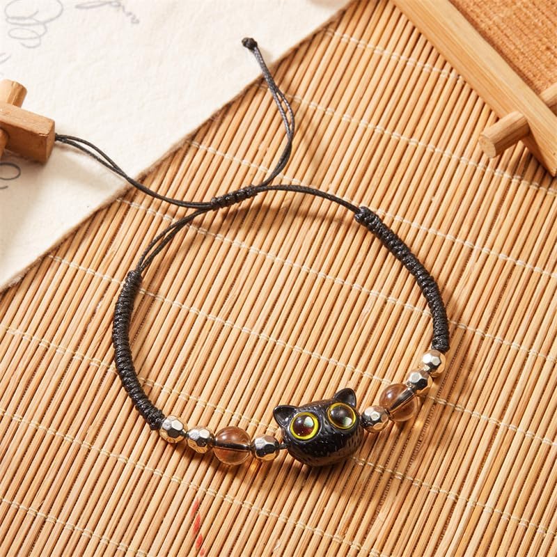 HOT ! Black Cat Strand Bracelet Kawaii Kitten Adjustable Braided Bracelet Friendship Birthday Jewelry Gifts for Animals Lovers