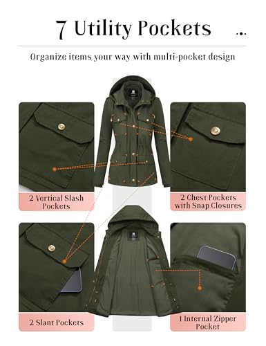 Pursky Women's Cotton Anorak Lightweight Military Jacket snug Utility Casual Coat With Removable Hood