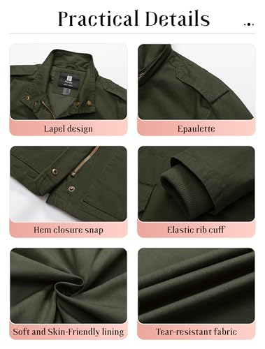 • ▶Comfortable & Durable:The military jacket is made of pure cotton fabric to ensure good comfort and breathability.Whether it is spring and autumn or winter, wear warm clothes to make you feel natural and comfortable.Women anorak jacket adopts reinforced stitching to ensure durability and maintain shape after multiple washing and wearing.Zippers and buttons are made of high-quality metal materials, which are smooth and durable.Make the lightweight jacket a long-term companion in the wardrobe