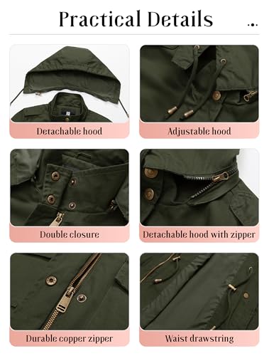 Pursky Women's Cotton Anorak Lightweight Military Jacket Warm Utility Casual Coat With Removable Hood 6