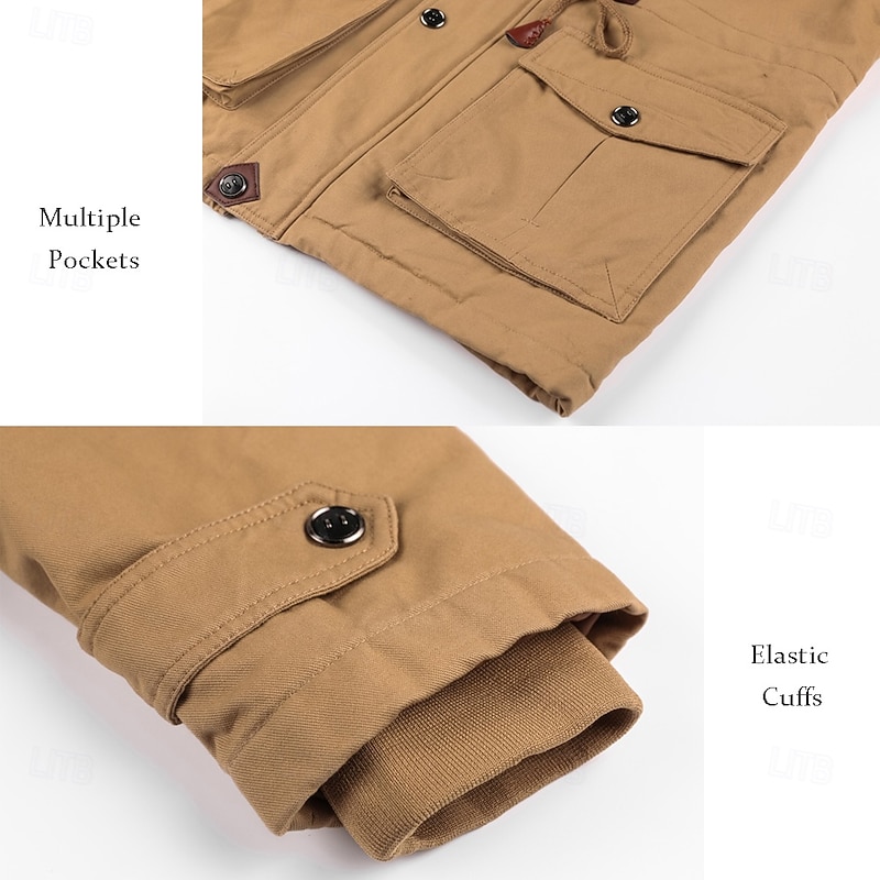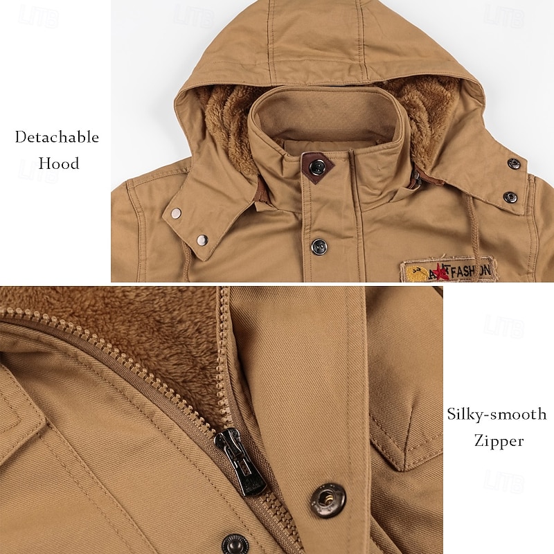 More information about Men's American Flag Fleece Jacket Military Jacket Parka Thermal Warm Thicken Casual Outdoor Home Detachable Hood Multiple Pockets Coat Outerwear Fall Winter Hooded Long Sleeve khaki