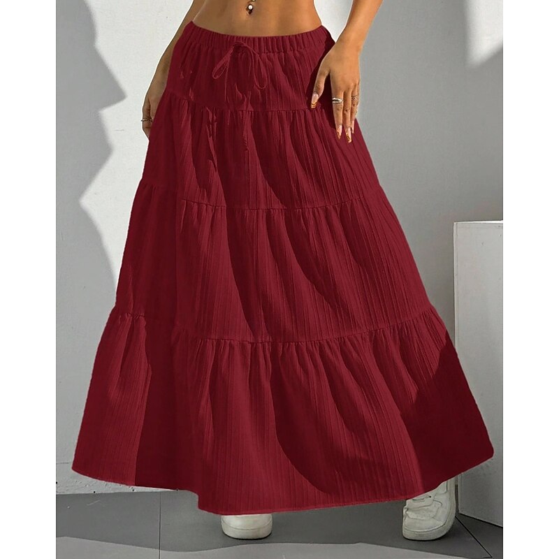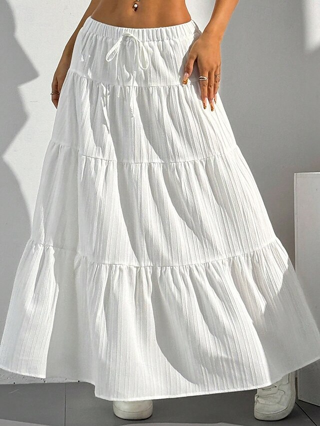 More information about Women's Skirt Swing Fashion Maxi Mid Rise Skirts Plain Ruched Drawstring Micro-elastic Vacation Going out Black White Red Brown Summer Polyester