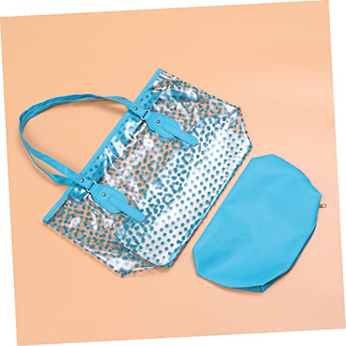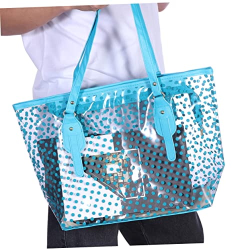 More information about PVC Beach Handbag for Women Round Dots Pattern Tote Bag Fashionable Summer Bag Blue Stylish Casual Carrying Accessory