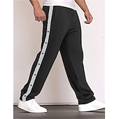 Highlights [Fabric] : Crafted from a high-quality polyester, these men's sweatpants offer breathable comfort and micro-elasticity, perfect for both athletic activities and casual wear. The fabric ensures a lightweight feel while maintaining durability and flexibility. [Fit Type] : Designed with a regular fit and wide-leg cut, these sweatpants provide ample room for movement. The mid-waist elastic waistband features a convenient drawstring for an adjustable and secure fit, ensuring maximum comfort throughout the day. [Design Highlights] : These sweatpants stand out with their stylish side stripe and classic side button detailing, offering a modern take on traditional track pants. Functional pockets are included for added convenience, making these pants both fashionable and practical. [Occasions] : Ideal for sports, outdoor activities, and daily casual wear, these sweatpants combine practicality with a touch of fashion. Pair them with your favorite sneakers and a casual top for an effortlessly stylish look suitable for any casual outing or workout session. [Size Range] : Available in a variety of colors including White, Black, Light Grey, and Royal Blue, these sweatpants come in sizes S, M, L, XL, 2XL, and 3XL, catering to a wide range of preferences and body types.