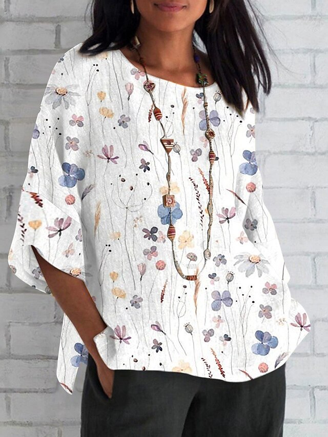 More information about Women's Shirt Floral Daily Casual 3/4 Length Sleeve Crew Neck Regular Tops Daily Holiday Print White Yellow Red Blue Summer Spring Fall