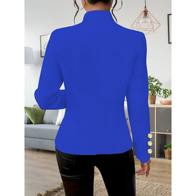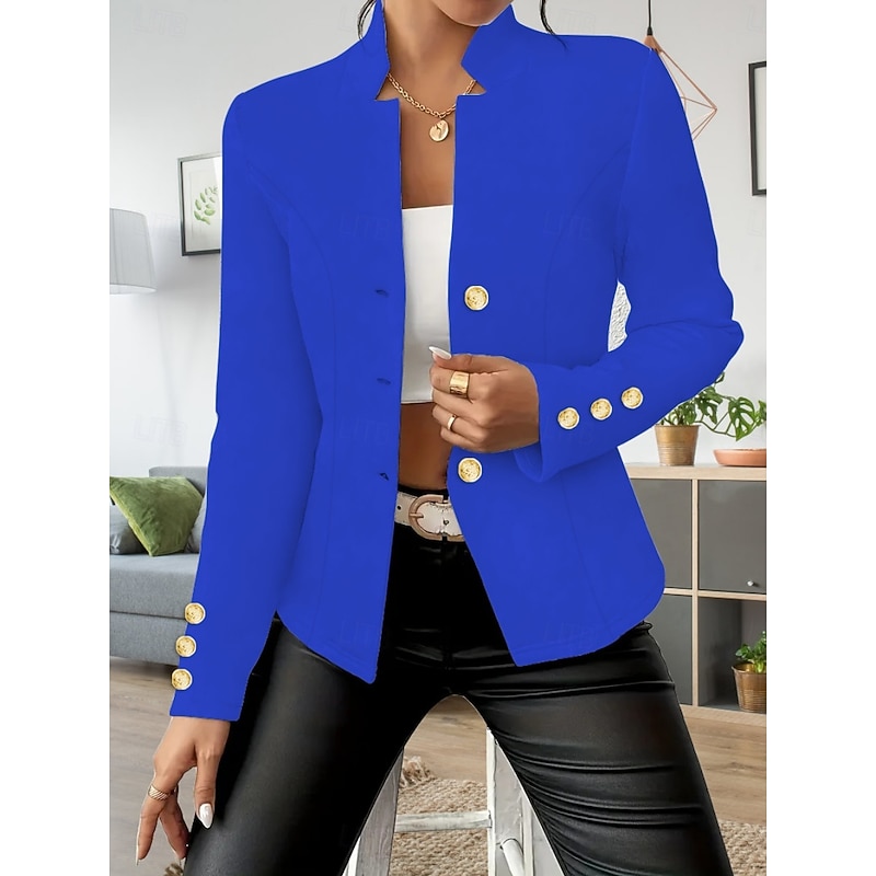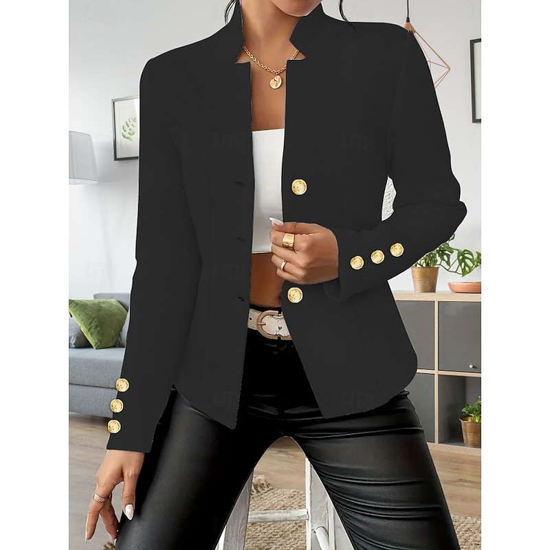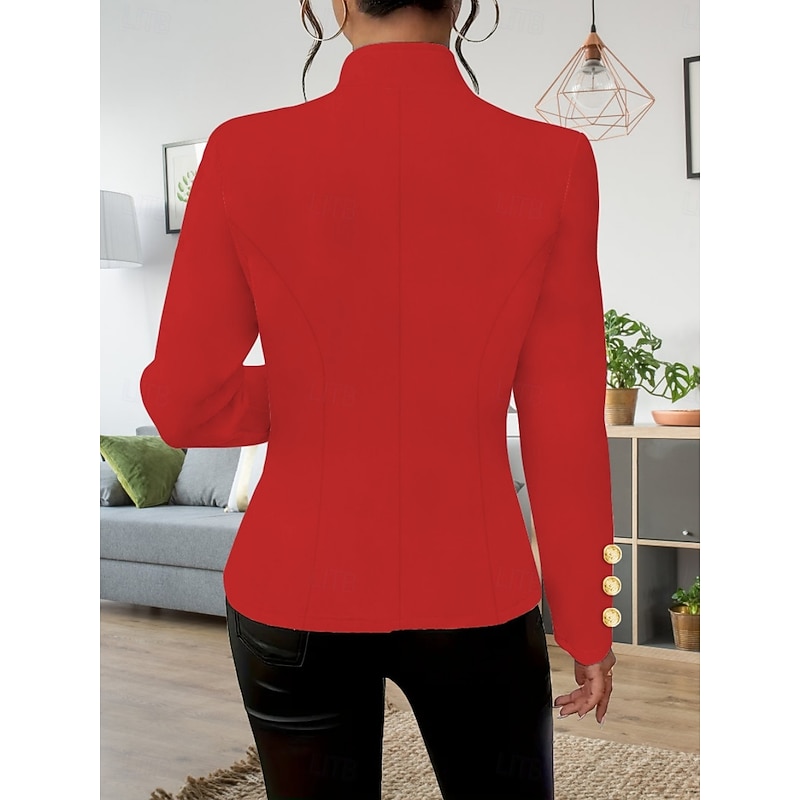 More information about Women's Blazer Comfortable Breathable Pocket Buttons Casual Sophisticated Plain Formal Vacation Street Casual Single Breasted Short Stand Collar Regular Fit Long Sleeve Outerwear Black White Red