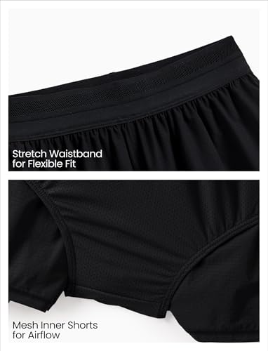 PATPAT Boys 2-Piece Athletic Set, Ultra-Light Quick-Dry T-Shirt & 2-in-1 Mesh Liner Shorts – Breathable Activewear for Sports & Play, Hyper Black, US6/XS 5