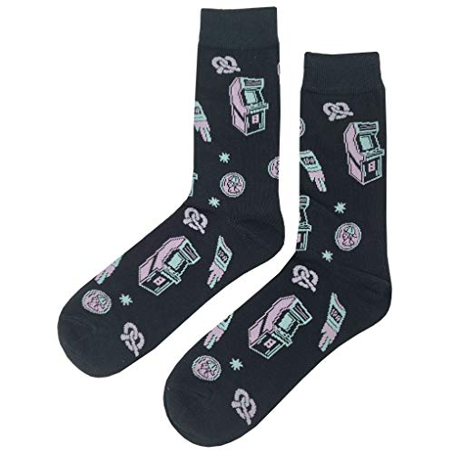 Arcade Dress Socks 4 Pack Funny Novelty Crazy Fun Design Men Size 8-12 Cotton Casual Crew Colorful Funky Fancy Socks Gift for Men 5