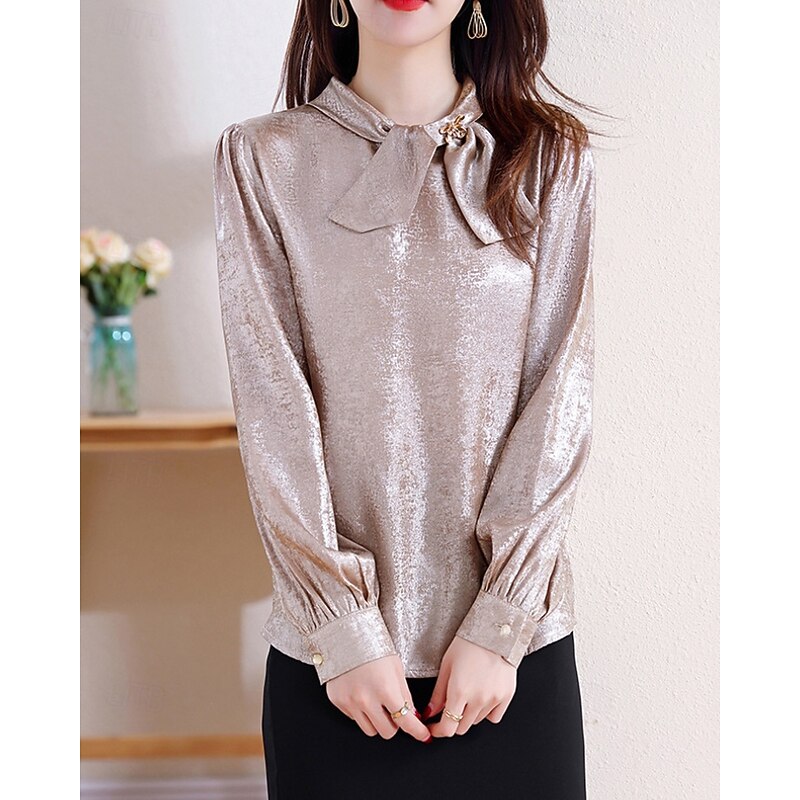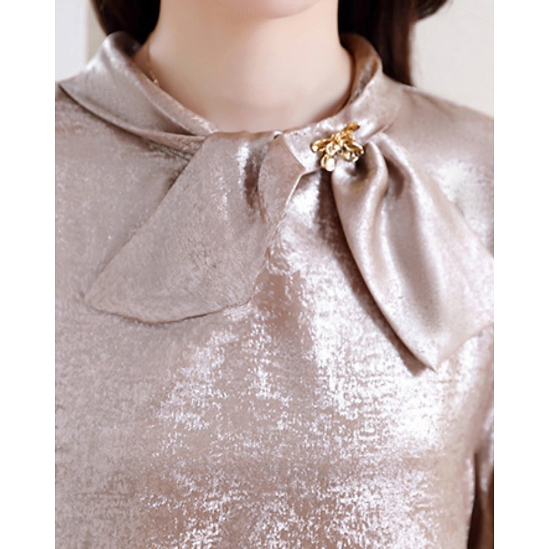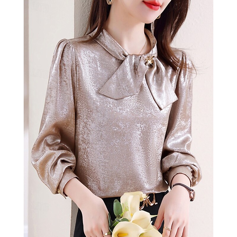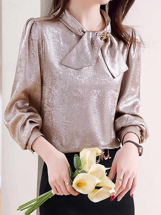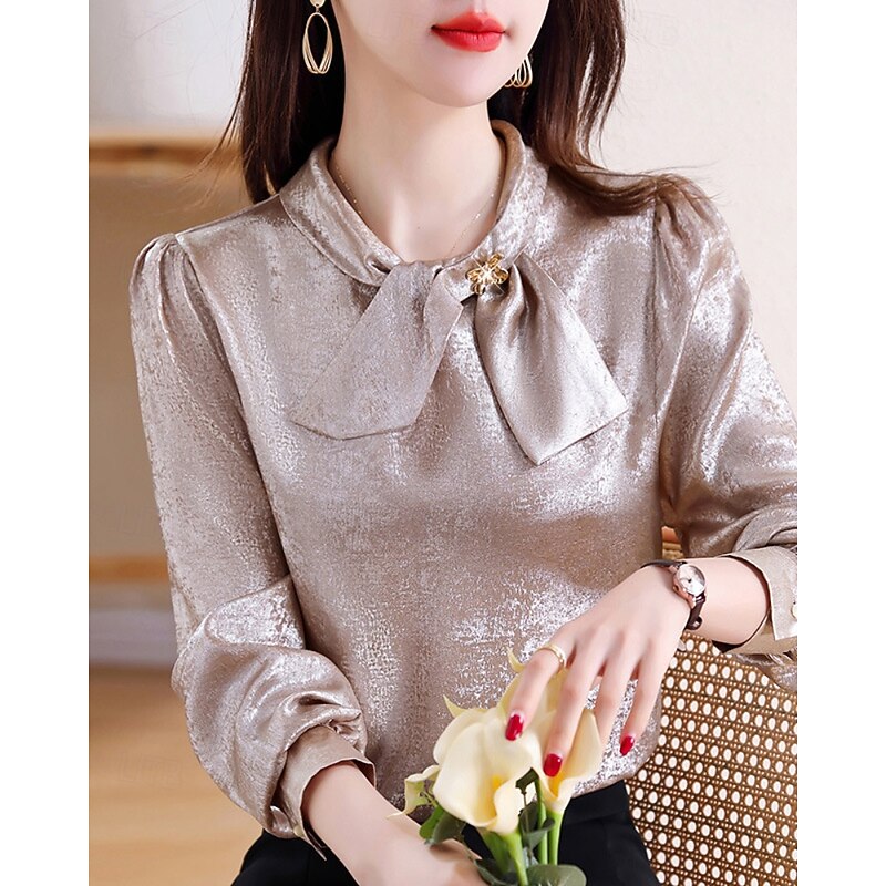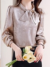 More information about Women's Shirt Elegant Dressy Satin Plain Elegant Stylish Long Sleeve Crew Neck Regular Tops Holiday Going out Bow Champagne Spring Fall