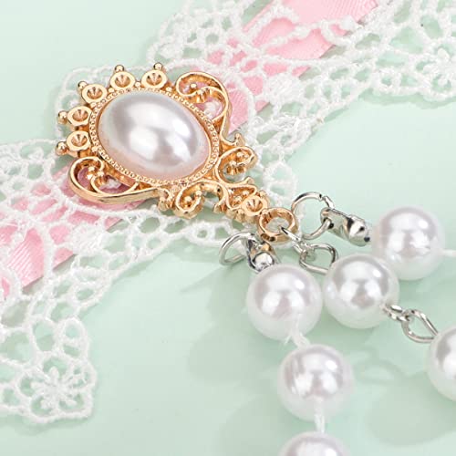 Xerling Elegant White Lace Choker Necklace Vintage Pearl Necklaces Gothic Victorian Lolita Costume Necklaces for Women Flower Lace Choker for Bridal Wedding 5