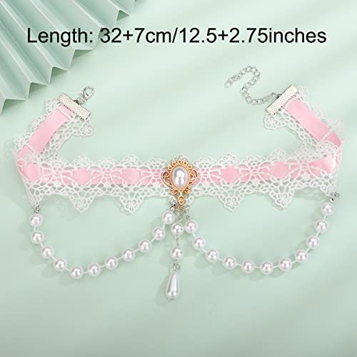 Xerling Elegant White Lace Choker Necklace Vintage Pearl Necklaces Gothic Victorian Lolita Costume Necklaces for Women Flower Lace Choker for Bridal Wedding 3