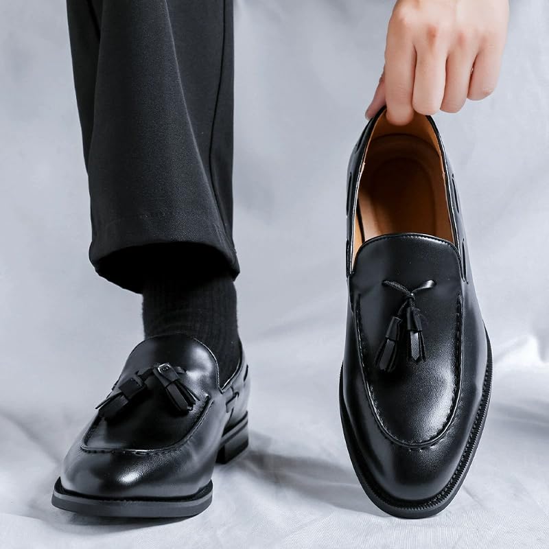 - chic & Versatile Design: Faux leather upper with moc toe stitching, tassel accents, and a timeless silhouette perfect for weddings, office wear, or casual events in solid black or rich brown.