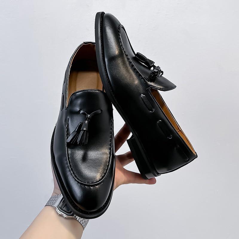 • Stylish & Versatile Design: Faux leather upper with moc toe stitching, tassel accents, and a classic silhouette perfect for weddings, office wear, or casual events in solid black or rich brown.