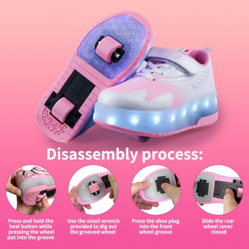 2-Pair Pink Roller Shoes Bundle for Girls- LED Flashing Light Up Sneakers with Retractable Wheels Rechargeable Skate Shoes Gift Size 6 Big Kid