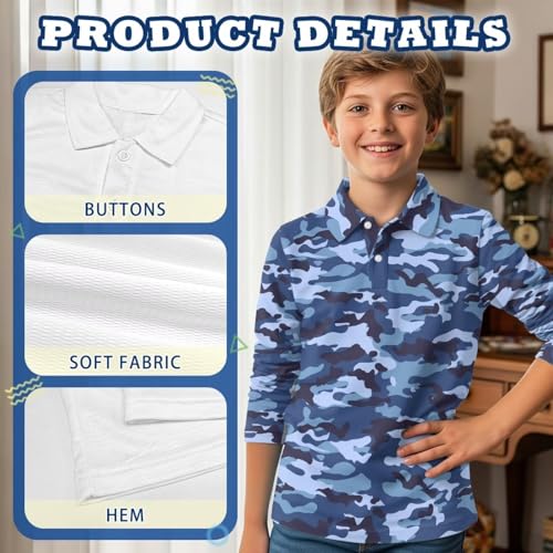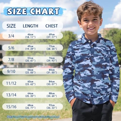 Fabric type: 100% PolyesterCare instructions: Machine WashOrigin: ImportedClosure type: Pull OnTRENDY COLLARED T SHIRT FOR KIDS: Trendy t shirt for kids is made of polyester and spandex, super soft and cozy, lightweight and breathable, suitable for wear in spring ,fall and winterNOVELTY GOLF SHIRTS FOR BOYS: This athletic pullover t shirt is suit for golf, gym, tennis, running, sports, daily wear, casual outings, beach, party, school, shopping, park, photo, holiday, playwear, picnic, outdoor etcLONG SLEEVE BOYS TEES TOP: Long sleeve, enduring collared, pullover tops, basic style, allover graphic print make your children more fashionable and eye-catchingCUTE SCHOOL UNIFORM TEE SHIRTS: Cute tee shirts is ideal gifts for birthdays, Christmas, Halloween, New Years Day, Thanksgiving Day, Children's Day, birthday, Easter and other special holidays etcATHLETIC SPORTS SHIRT FOR KIDS TEENS: This long sleeve collared t shirt fits 3-16 years boys, and there are 7 kinds of size for choosing, please refer to our size chart before place an order
