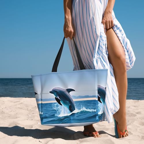 • Material : This Jumping Up Dolphins Beach Travel Bag Is Made Of 100% Polyester Fabric, Lightweight, Waterproof And Sandproof, Value For Money