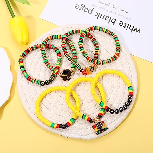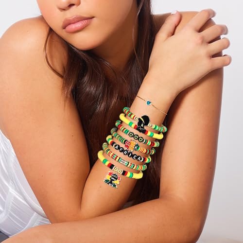 FAERLIIRY Beaded African Bracelets Black Women Preppy Friendship Bracelets Clay Bead Africa Map Heart Charm Bracelet Summer Bracelet African Jewelry for Women 7