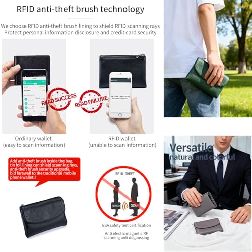 • 【Secure RFID Protection & Organized Capacity】Tired of bulky wallets or worried about electronic pickpocketing? This slim unisex wallet features RFID blocking technology to safeguard your cards. Its smart layout holds all your essentials – multiple cards, cash, IDs, and even a coin compartment – without the bulk, making it a perfect minimalist wallet for daily use.