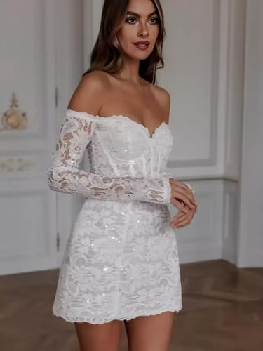 sought-after ! Lace Short Wedding Dresses for Bride Tulle Long Sleeve Wedding Dress for Women A Line Engagement Bridal Shower Dress