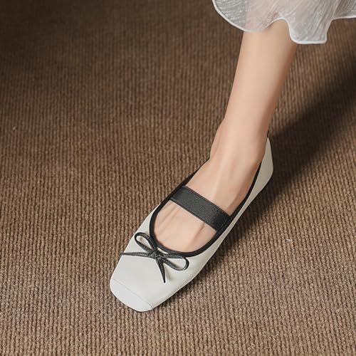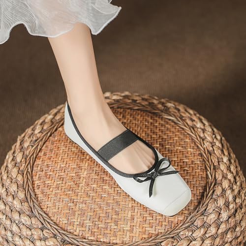 JiangWei Shu Soft Ballet Flats Square Toe Womens Slip On Elegant Mary Jane Shoes 6