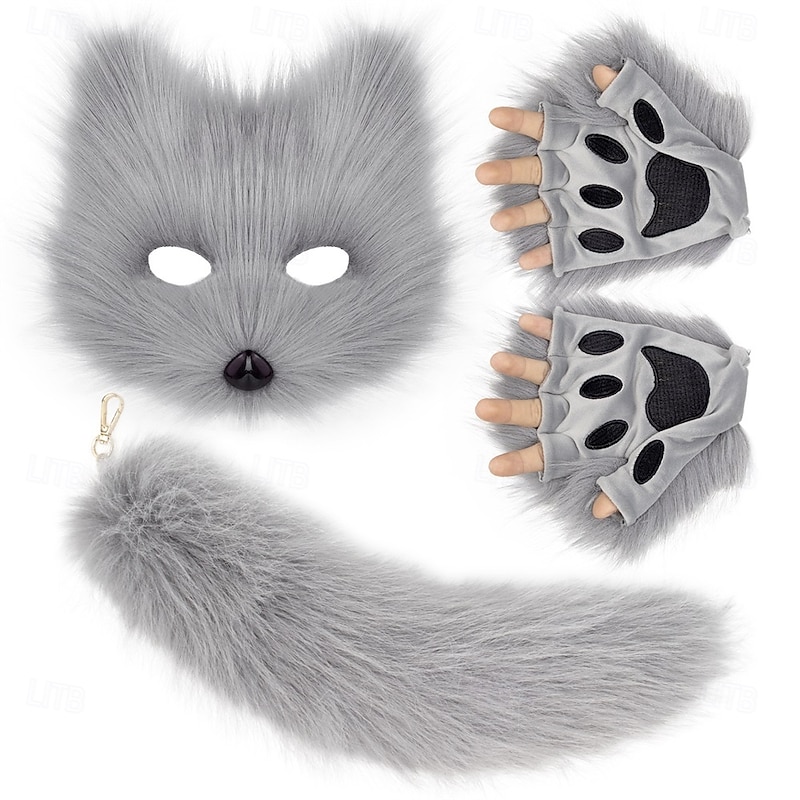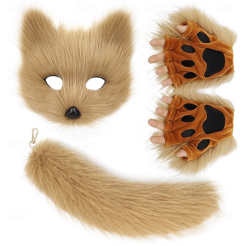 $43.99 - Furry Fox Mask Set with Gloves and Tail – Handmade Cosplay Accessories, Animal Mask, Tail, and Gloves for Halloween, Party, and Role Play 2025. Shop for cheap Hair Styling Accessories online? Buy at lightinthebox.com on sale today!