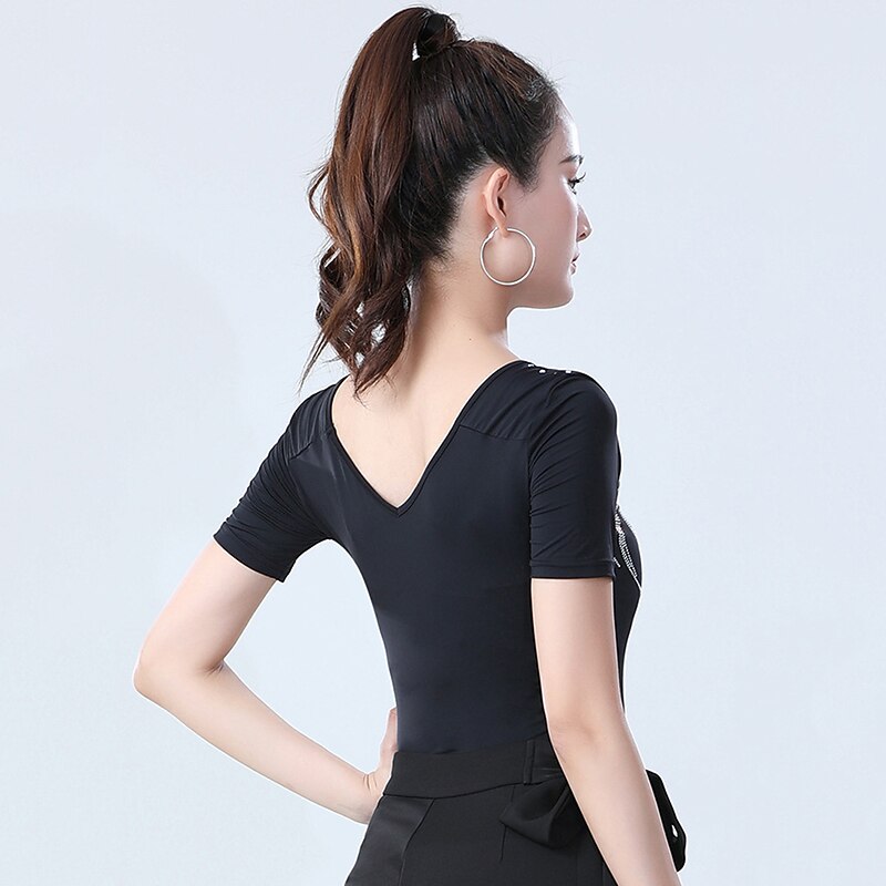 sought-after ! Latin Dance Top Printing Solid Crystals / Rhinestones Women's Training Performance Short Sleeve High Nylon
