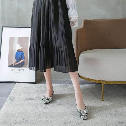 HIPPOSEUS Women's Rhinestone Flats Shoes Pointed Ballet Flats Sparkle Wedding Dress Shoes