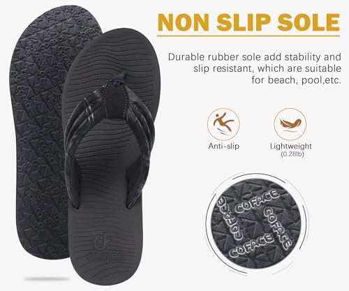 COFACE Women’s Flip Flops with Arch Support Ladies Fashion Lightweight Wedge Flip Flops Comfortable Yoga Mat Sole Summer Platform Thong Sandals 5