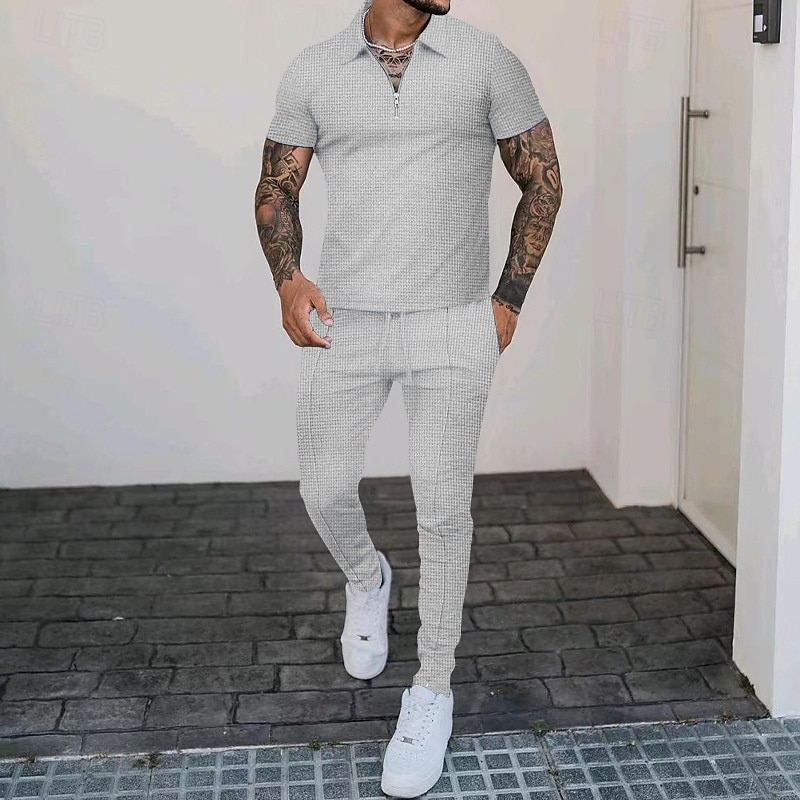 Why Choose Men's T-shirt Suits Shirt and Pant Sets 2 Pieces Outfits Short Sleeve Quarter Zip Summer Plain Fashion Casual 2 Piece Vacation Daily Wear Going out Black White Royal Blue Top Tee for Men?