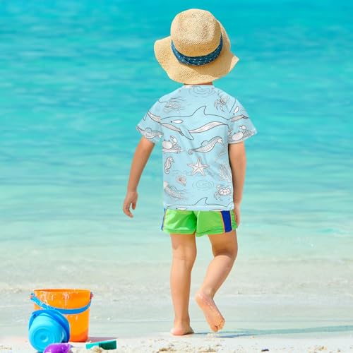 Baby Blue Underwater Animal Whale Jellyfish Short Sleeve Boy Bathing Suit Swimsuits for Kid Girls Rash Guard Swimsuit for 3-12 Years Traje de Banos para ninas 5