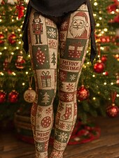 More information about Women's Leggings Vacation Vintage Ethnic Style Full Length High WaistPantsUgly Christmas Graphic Santa Claus Christmas 3D Print Novelty Quick Dry Breathability Soft Stretchy Outdoor Home Causal Light